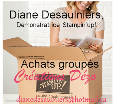 Si, comme moi, vous aimez les couleurs coordonnées de Stampin'Up! mais n'avez pas les moyens de tout acheter, participez à mon achat groupé. Je vous propose plusieurs achats groupés afin d’avoir plus de diversité pour le même prix.